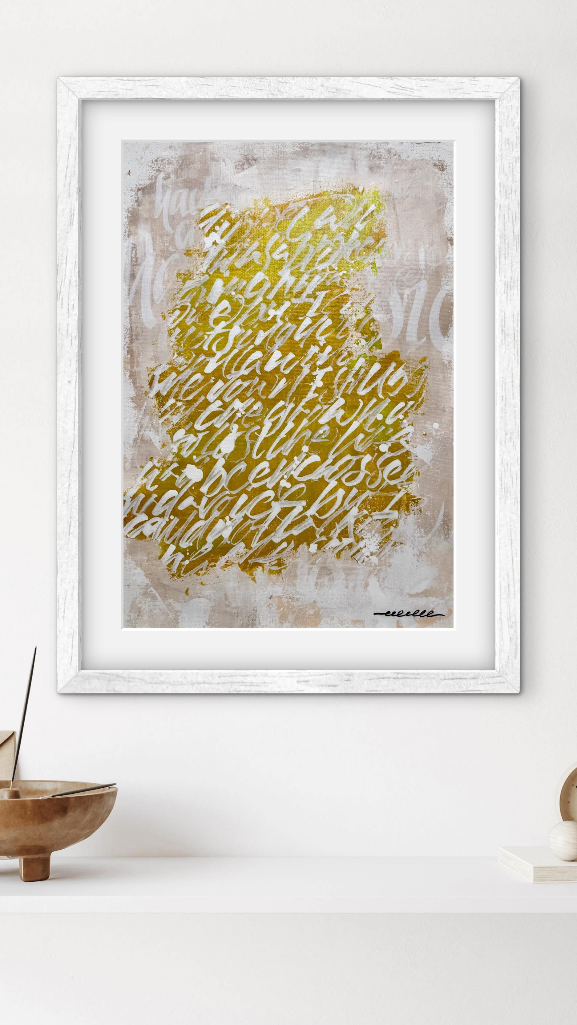 Hoy mi trabajo fusiona caligrafía emocional y arte abstracto. Exploro el equilibrio entre control y espontaneidad, entre vacío y presencia. Cada pieza es única, creada como un espacio de pausa y conexión, donde la obra no solo se observa, sino que se siente.