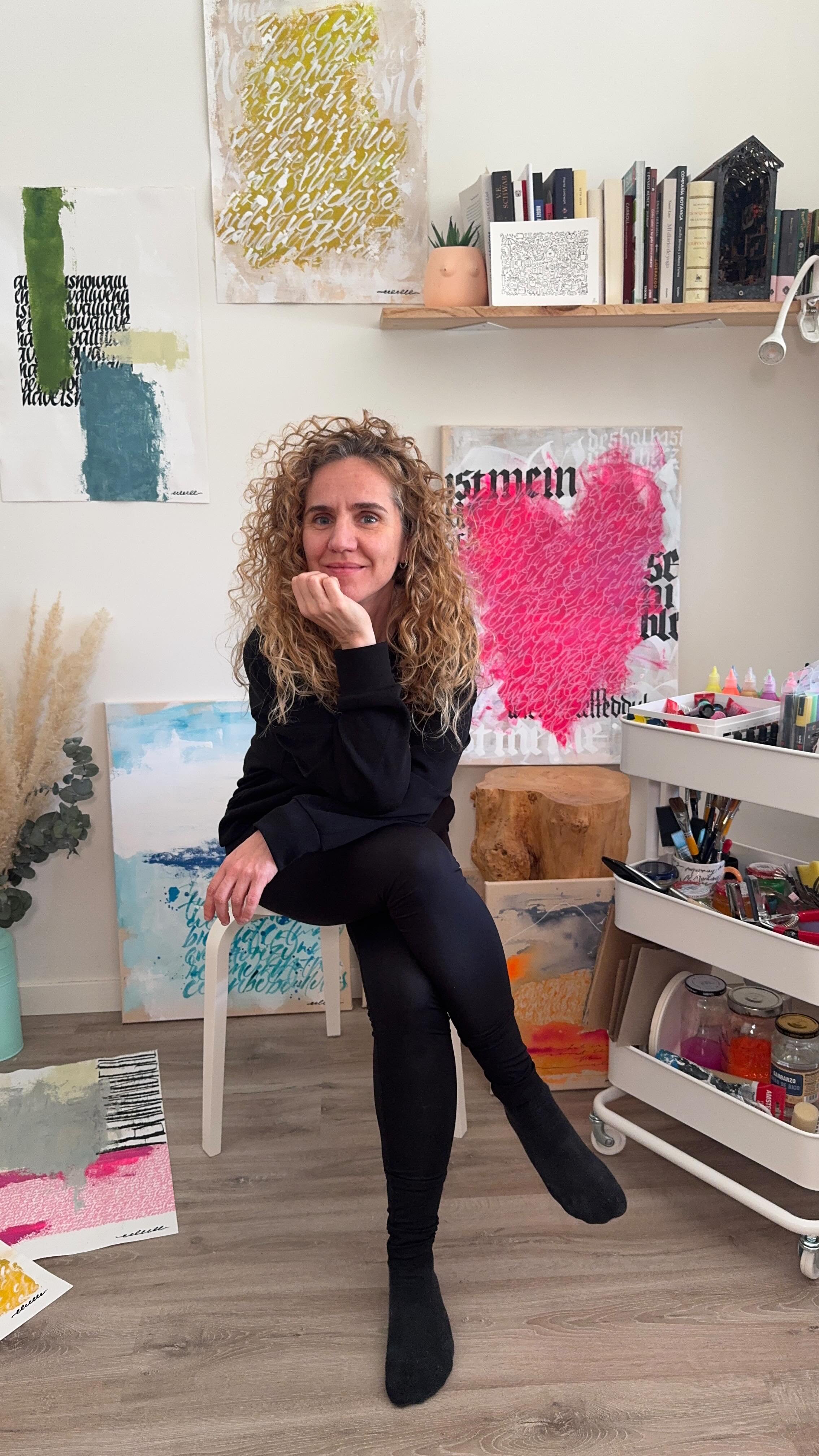 Mi obra nace del gesto, de la escritura que deja de ser palabra para convertirse en emoción. Durante años trabajé en marketing y dirección de arte, aprendiendo a comunicar con precisión y a leer el lenguaje de las formas. Pero fue la caligrafía —practicada durante más de ocho años— la que me devolvió algo esencial: la libertad de expresar lo que no siempre se puede decir.